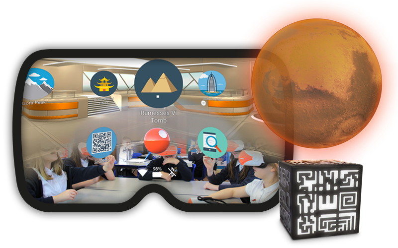 ClassVR이 제공하는 AR큐브와 워크시트를 통해 증강현실(AR)을 손 안에서 이용해 보세요.