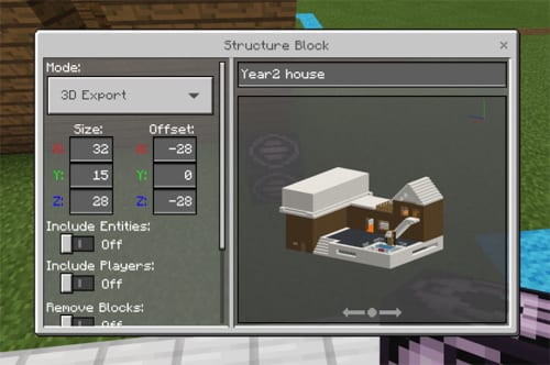 마인크래프트에서 학생들은 그들이 함께 지은 집이나 건물을 선택했습니다. 그런 다음 학생들은 마인크래프트 구조 블록을 사용하여, 건물을 3D 객체로 저장했습니다. 학생들은 윈도우의 그림판 3D를 열고 자신이 저장한 3D 모양과 텍스트 도구를 사용하여 자신의 이름을 새긴 후, 작업을 3D 개체(*.glb 파일 형식)로 저장했습니다. 그런 다음 이러한 3D 개체를 ClassVR Portal에 업로드후 ClassVR 헤드셋에 전송하여 전체 학급이 각 학생들이 직접 만든 건물들을 감상했습니다. (ARCubbes를 사용하면 더 자세히 관찰할 수 있습니다).