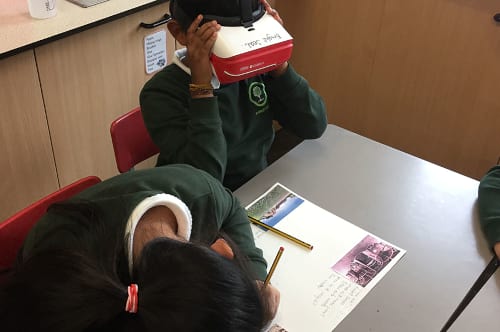ClassVR의 초점 도구를 사용하여, 특정 영역에 대해 학생들의 관심을 끌면서 토론을 진행하여 이해도를 넓힐 수 있었습니다. 예를 들어, 우리는 노스 아크로폴리스, 티칼 등을 실체로 관찰하고, 구조적인 특징과 그것이 사용된 목적에 대해 토론하고, 학생들에게 몰입 경험을 통해 가설을 세워 추측해보라고 하였습니다. 학생들이 어디에서 무엇을 보고 있는지 교사가 볼 수 있다는 것이 토론을 이끌고, 더 체계적이고 맞춤화된 구체적인 질문을 던지는 데도 도움이 되었습니다.