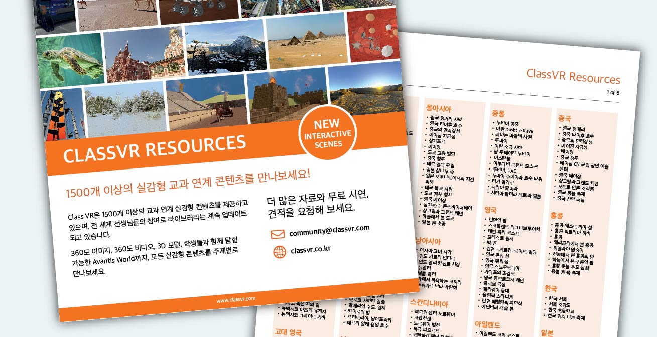ClassVR이 제공하는 20개 과목 이상, 1,500개 이상의 VR 교육 콘텐츠 리스트를 지금 확인해 보세요.